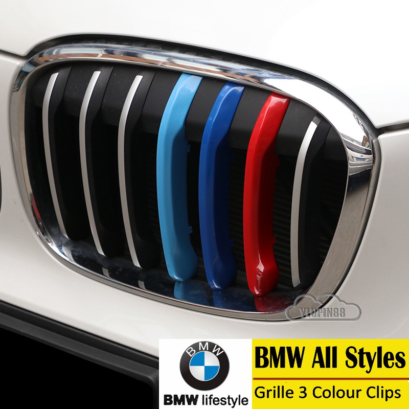 3pcs BMW M Sport Sticker Car Kidney Grill Clip Cover 3 Color Front Grill Covers Clips Stripes Trim Car Accessories Modified For BMW 1 Series 2 Series 3 Series 4 Series 5