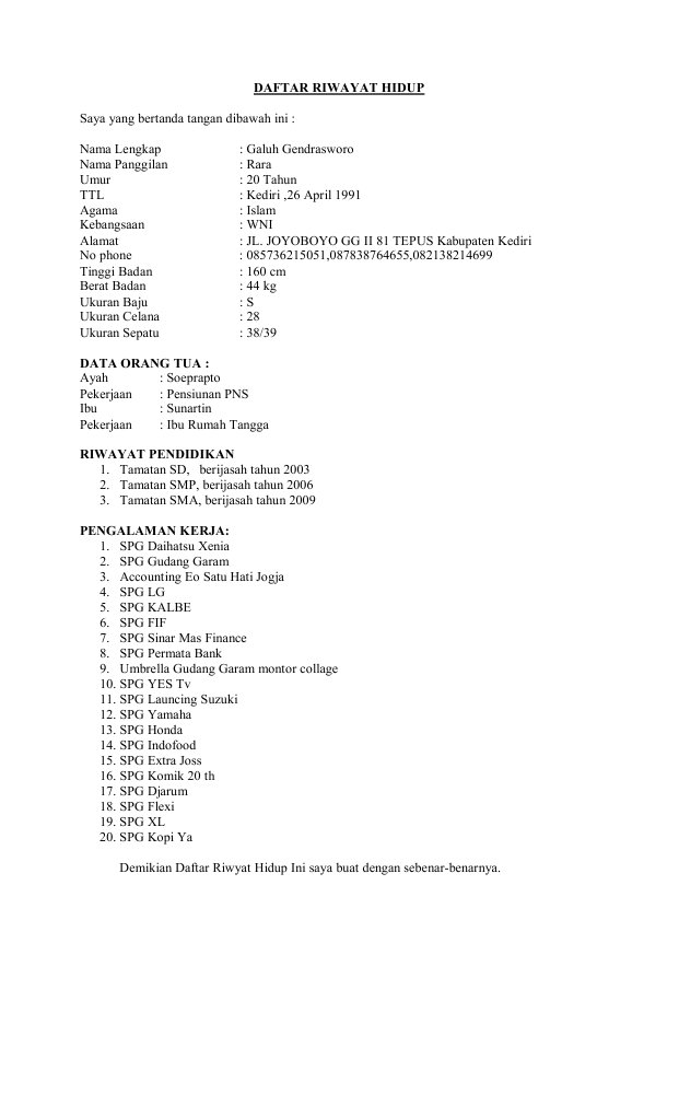 Kumpulan Contoh Daftar Riwayat Hidup Lamaran Kerja Rumah – cute766