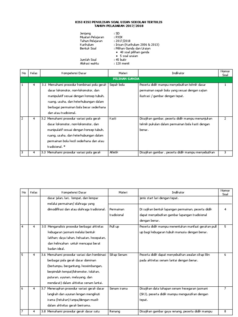 1. Format Kisi-kisi 2018 PJOK