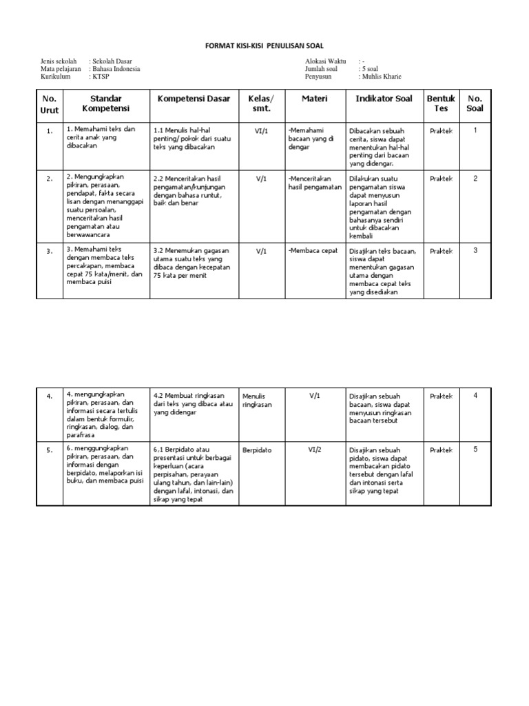 FORMAT KISI-KISI PENULISAN SOAL - PDF Free Download