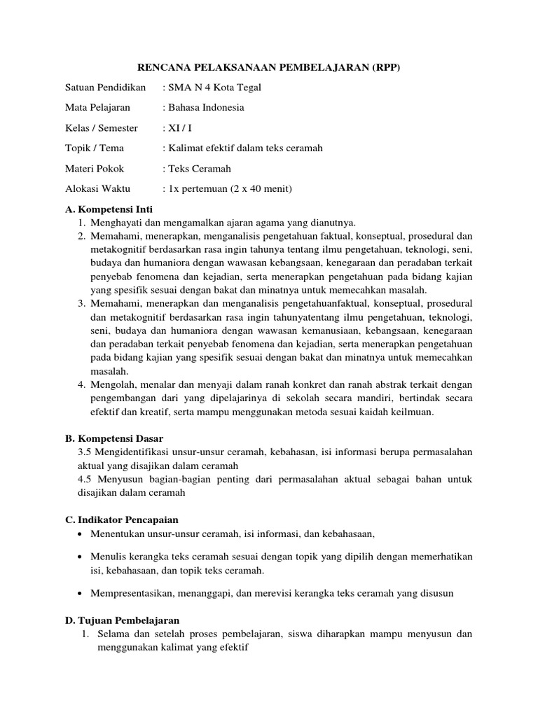 DOC) RPP TEKS PIDATO PERSUASIF KD 3.3 DAN 4. | Afif Fikri - Academia.edu