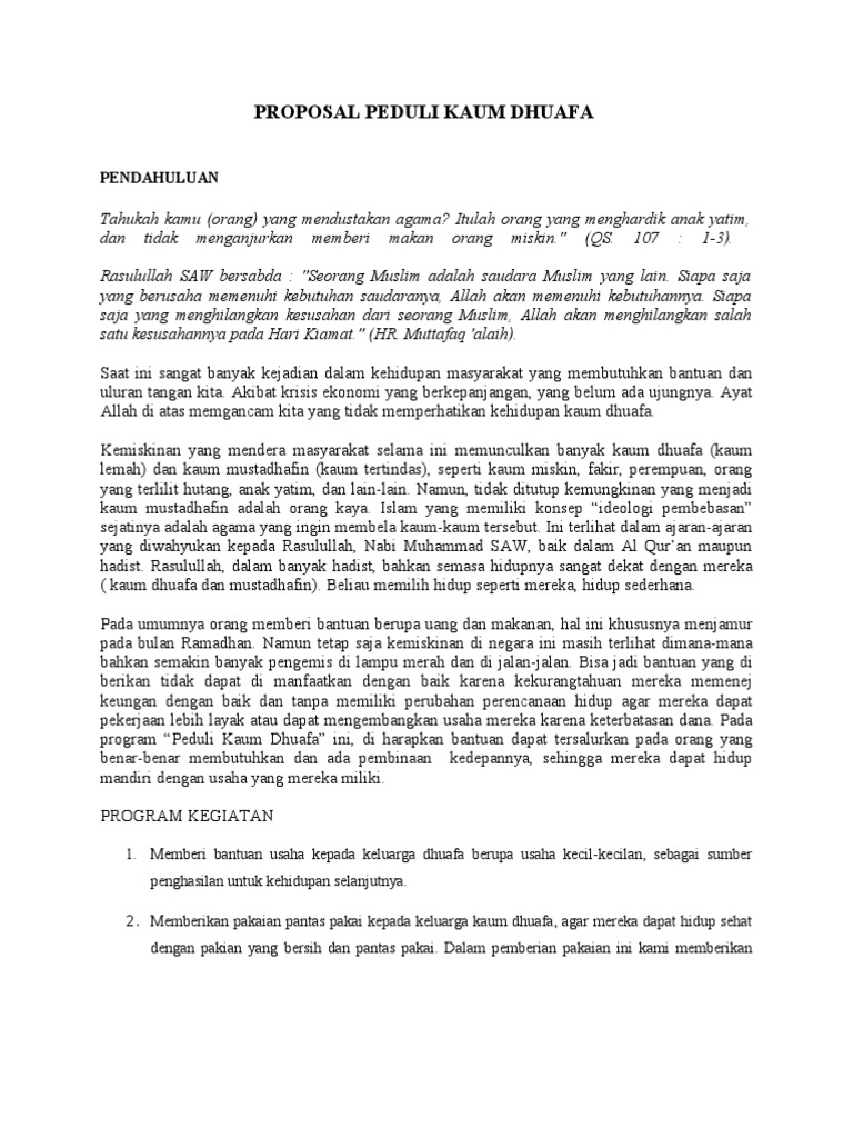 Contoh Proposal Bantuan Dana Untuk Kaum Dhuafa