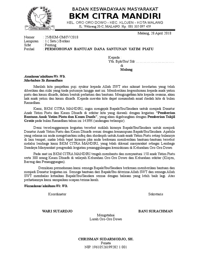 PDF) Surat Permohonan Menjadi Donatur ZISWAF Daerah Malang Raya | Dompet Amal - Academia.edu