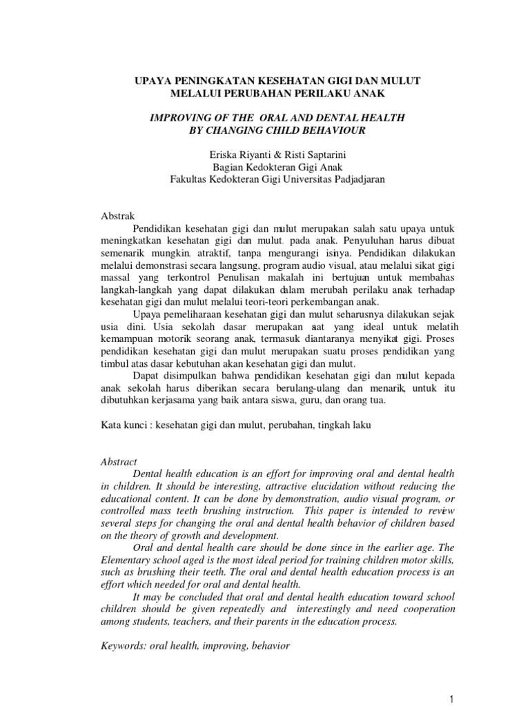 PDF) Analisis Hubungan Perilaku Pemeliharaan Kesehatan Gigi dan Mulut Terhadap Status Kesehatan Gigi dan Mulut Siswa SD dan SMP di Medan