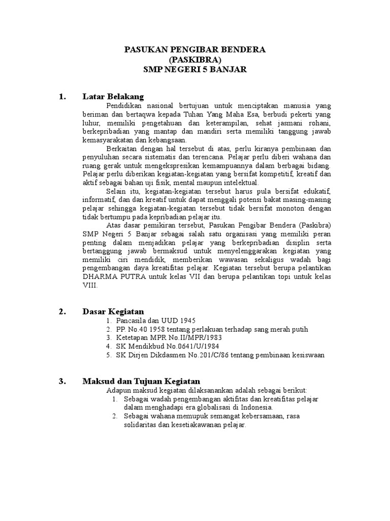 DOC) PROPOSAL DANA PELANTIKAN CALON ANGGOTA PASKIBRA SMANSA ANGKATAN XX | Desak Wahyuni - Academia.edu