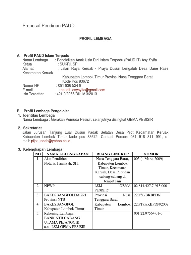 DOC) CONTOH PROPOSAL RINTISAN PAUD BARU 2016 | Miftah (Mix) - Academia.edu