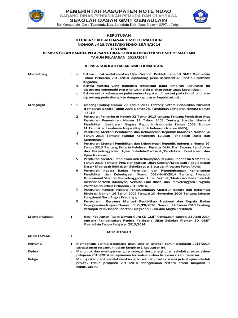 Contoh SK Pembentukan Panitia Ujian Sekolah SD - Guru Loyal