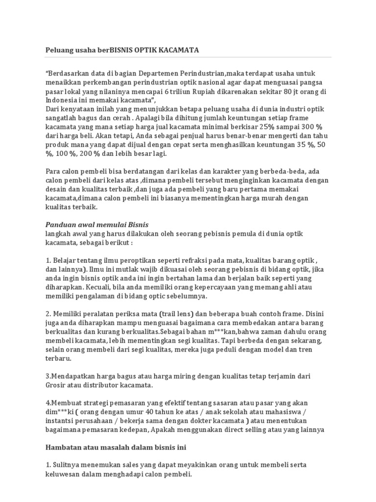 Koleksi Proposal Usaha Optik Kacamata | Download Contoh Laporan Hasil Observasi