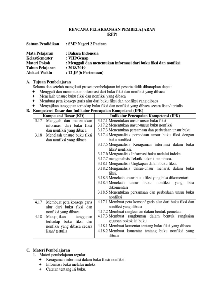 DOC) RPP Bahasa Indonesia kelas VII Bab VIII | Asisten Nur - Academia.edu