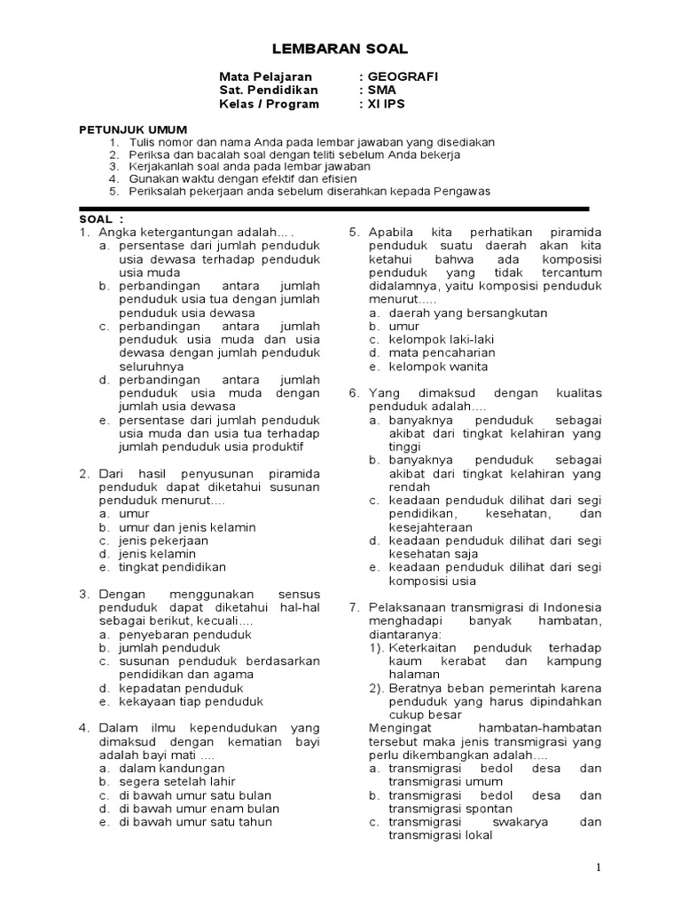 Contoh Soal Dan Jawaban Geografi Dinamika Kependudukan Indonesia - Guru Ilmu Sosial