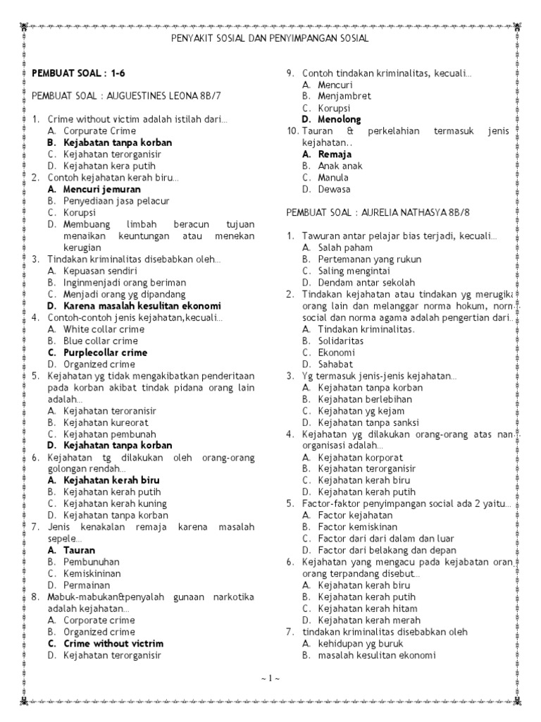 Soal dan jawaban Penyimpangan Sosial untuk smp (Sosiologi …