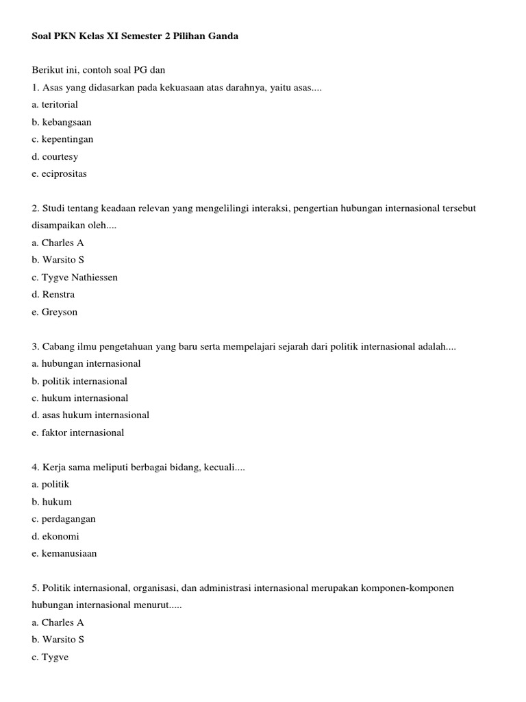 Soal Mid Semester 2 Kelas 11 Pkn - Guru Ilmu Sosial