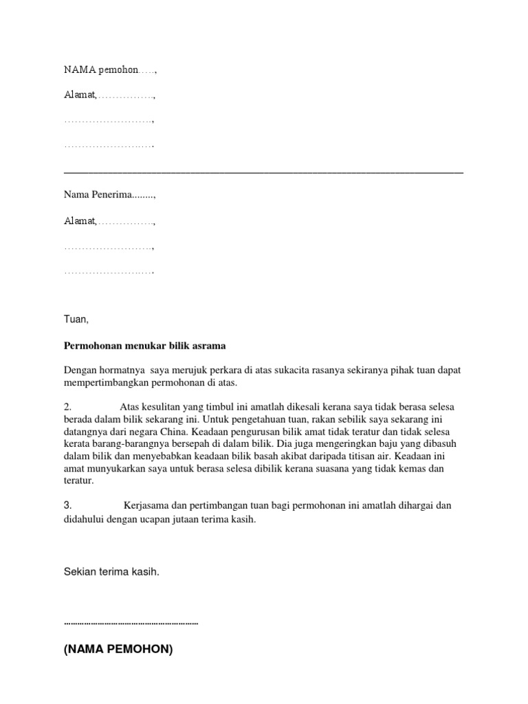 Contoh Surat Rasmi Permohonan Rumah Pprt - FRasmi