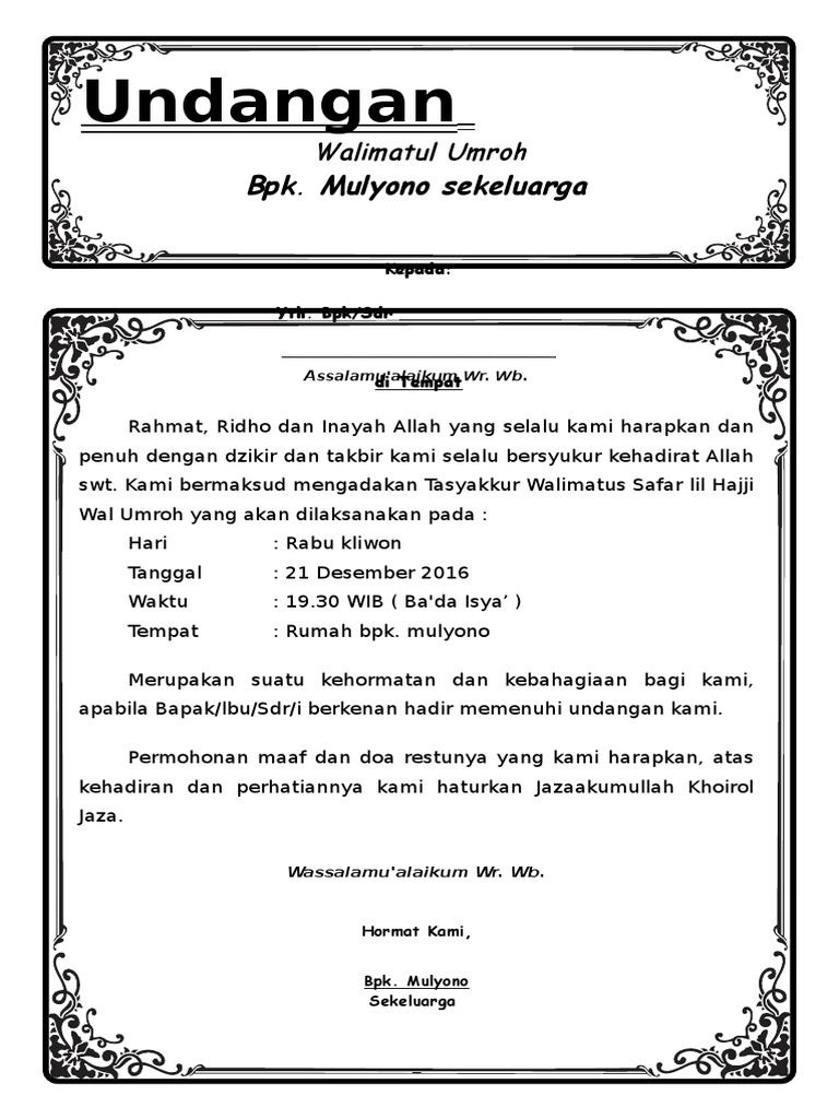 DOC) Contoh Konsep Surat Undangan Walimatus Safar dan Umroh Word | Kurniawan M. Rifai - Academia.edu