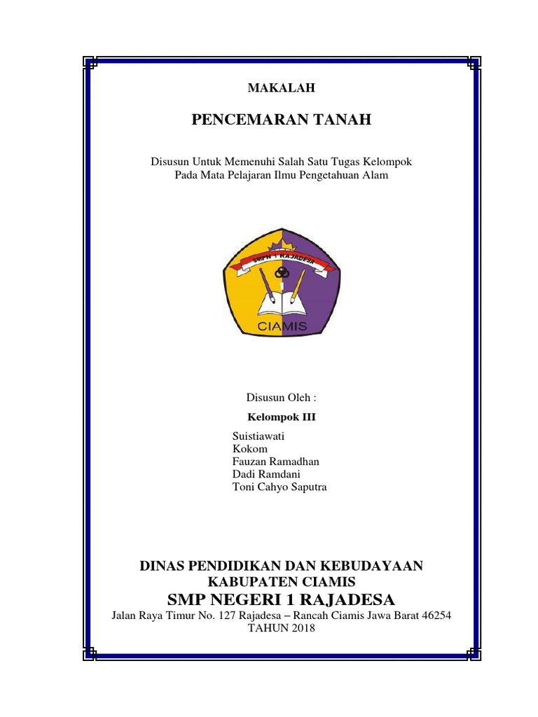Contoh Cover Makalah Smp Yang Benar | Kumpulan Soal pelajaran 10