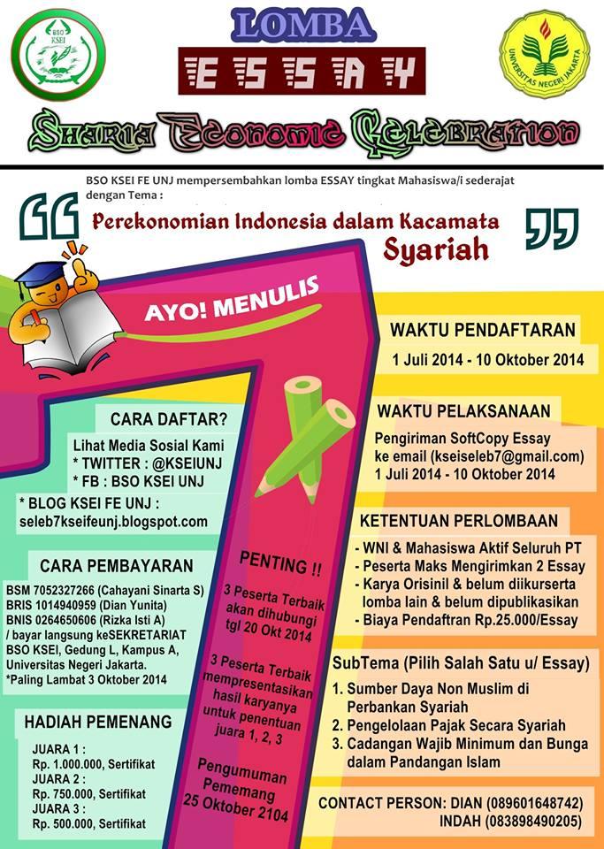 BSO KSEI FE UNJ Twitter: “Lomba Essay Ekonomi islam untuk Mahasiswa Nasional. KSEI FE UNJ Proudly present SELEB 7 #ekonomiislam http://t.co/rCh2k0IPTP”