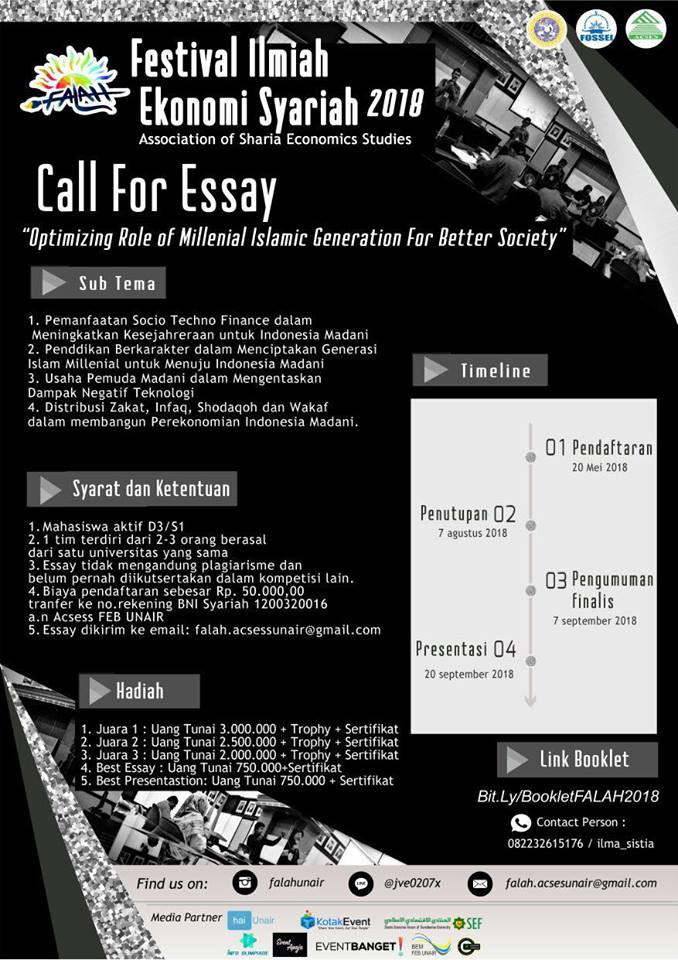Hai Unair on Twitter: “FALAH 2018 Festival Ilmiah Ekonomi Syariah 2018 20 Mei - 14 Agustus 2018: registrasi dan submit essay For more information : https://t.co/4Wzj8Ooo4b Narahubung: 082232615176 / ilma_sistia