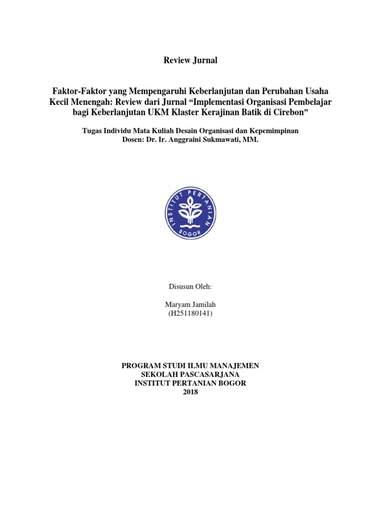 Faktor-Faktor yang Mempengaruhi Keberlanjutan dan Perubahan Usaha Kecil Menengah: Review dari Jurnal “Implementasi Organisasi Pembelajar bagi Keberlanjutan UKM Klaster Kerajinan Batik di Cirebon”