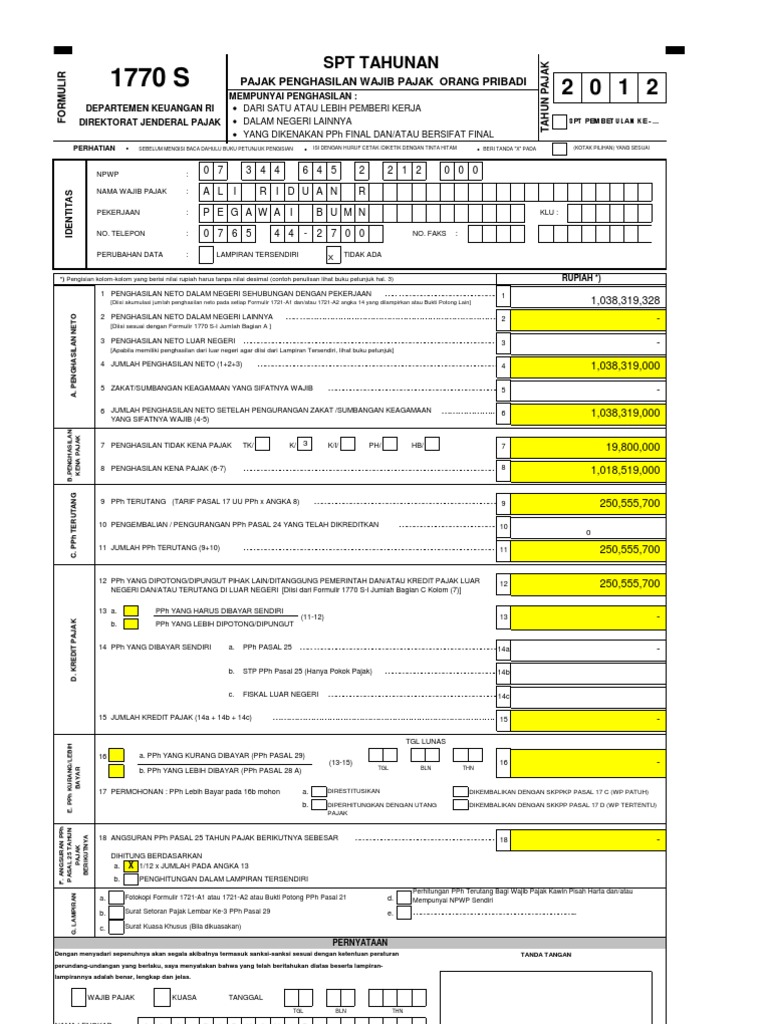 Download Formulir SPT Tahunan 1770 S Lengkap Dengan Rumus PTKP 2016