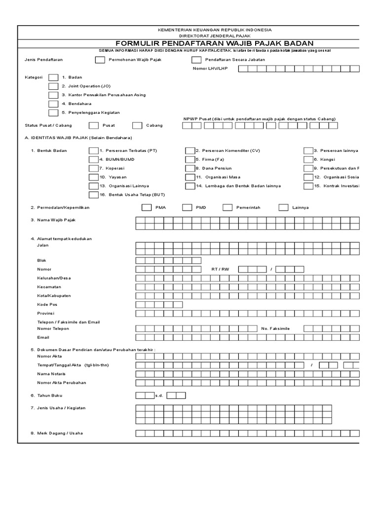 PDF) Formulir Perubahan Data Wajib Pajak PER 20/PJ/2013.pdf | Jessica Irawan - Academia.edu