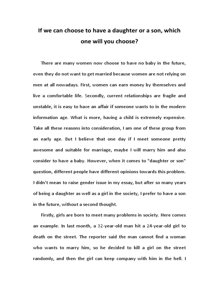 If we can choose to have a daughter or a son, which one will you choose? | Marriage | Gender