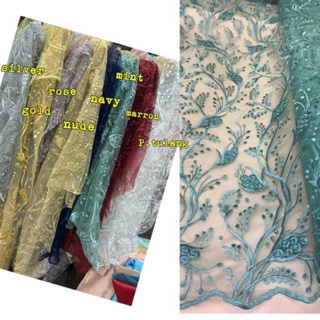 Jual Kain tile bordir MJ / tile jaring / bahan kebaya / dress …