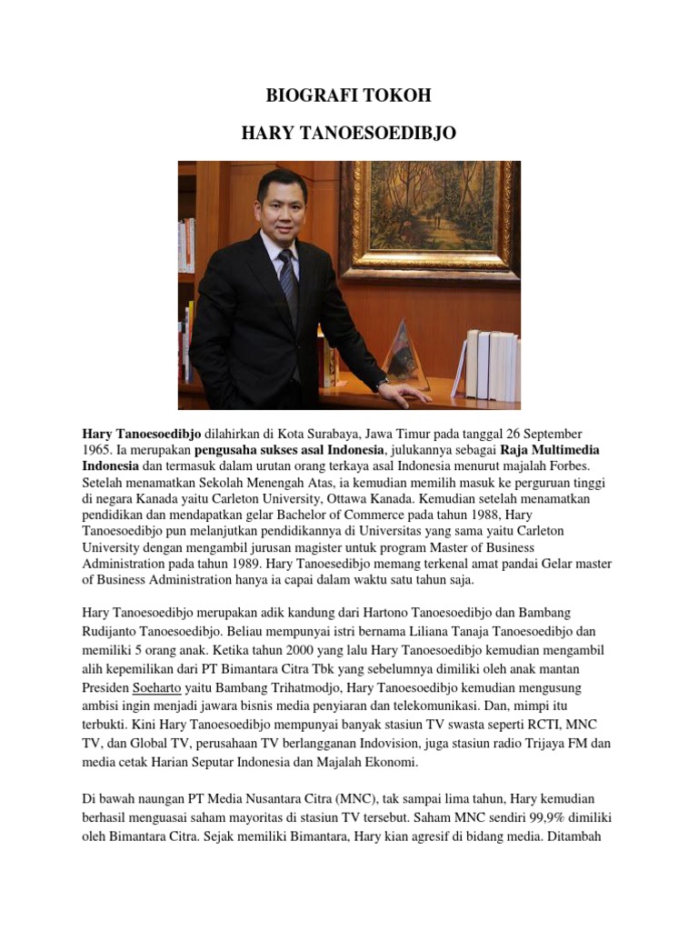 Biografi Hary Tanoesoedibjo Pemilik MNC Group Sosok Pengusaha Sukses Indonesia | Biografi Pengusaha Muda
