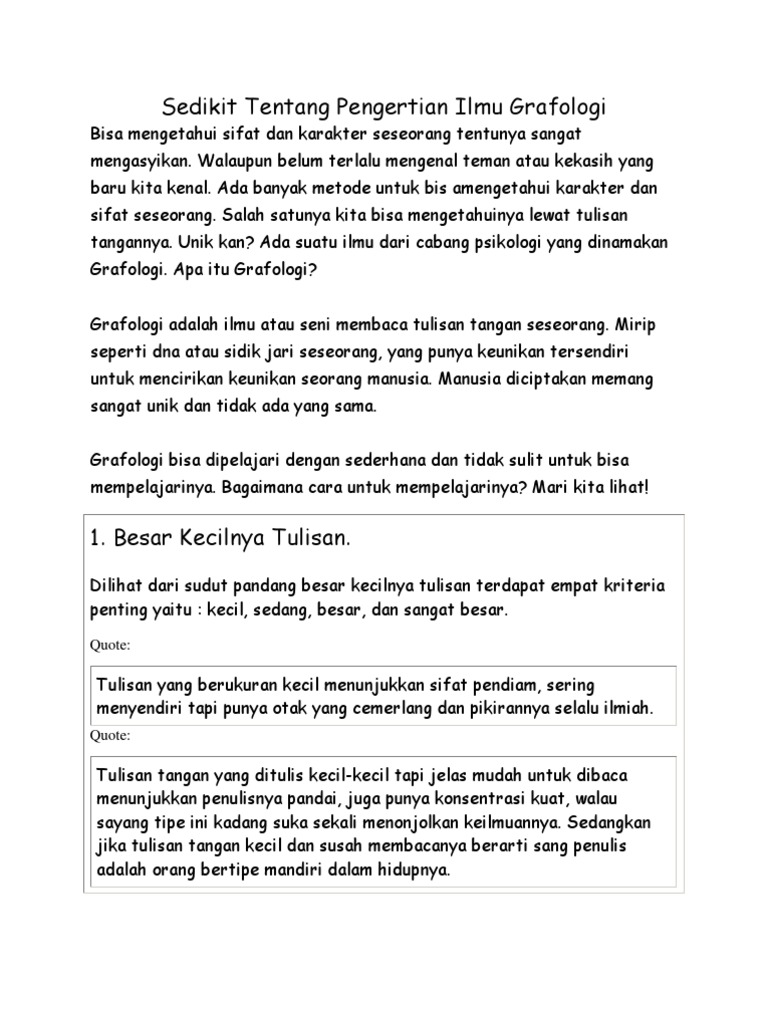 Mengenal Sifat dan Karakter Melalui Ilmu Grafologi/Tulisan Tangan Halaman all - Kompasiana.com