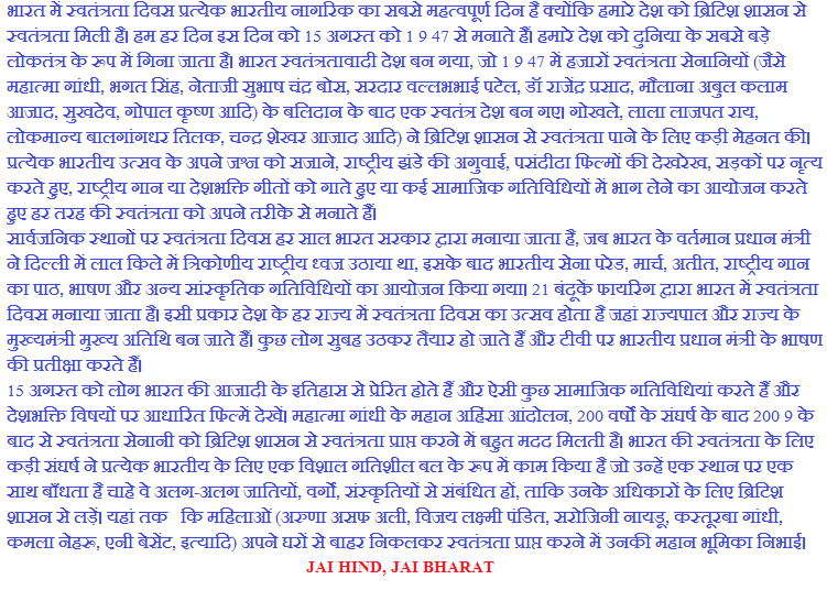 Short essay on independence day in hindi language