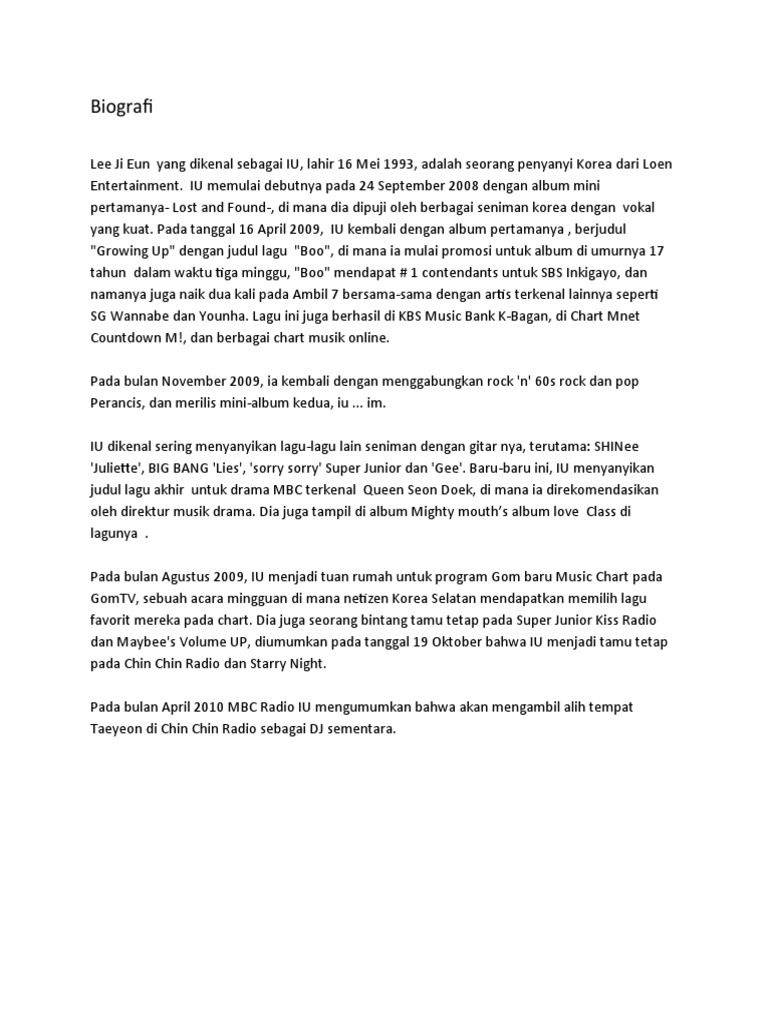 All About K-POP - Biodata IU (Lee Ji Eun) Soloist - Wattpad