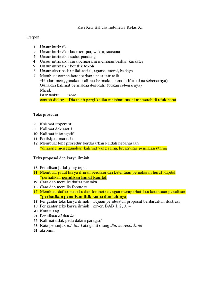 Kisi Kisi Bahasa Indonesia Kelas XI