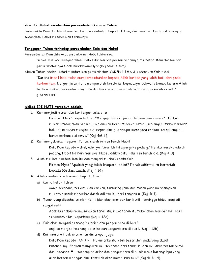 PDF) Bahan ajar sekolah minggu: Kain dan Habel (Kej. 4) | V. Christianto - Academia.edu