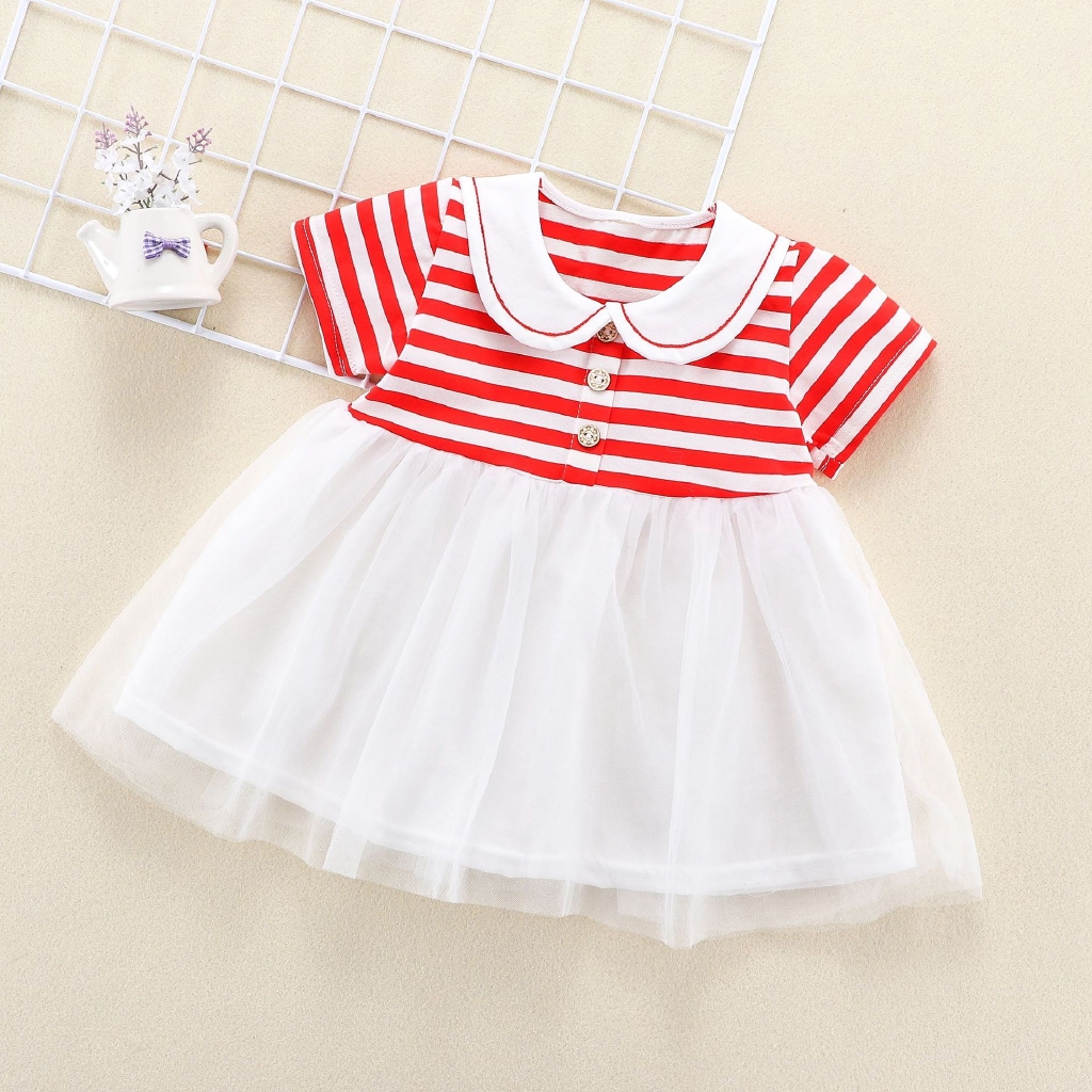 RS Gaun Anak Perempuan Lengan Pendek Motif Garis Bahan Katun Kain Kasa untuk Musim Panas | Shopee Indonesia
