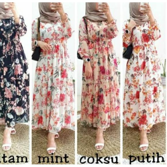 Jual Long Floral Dress Maxi Lengan Panjang Bahan Sifon Motif Bunga Gaya - Kota Medan - Rejo guntur | Tokopedia