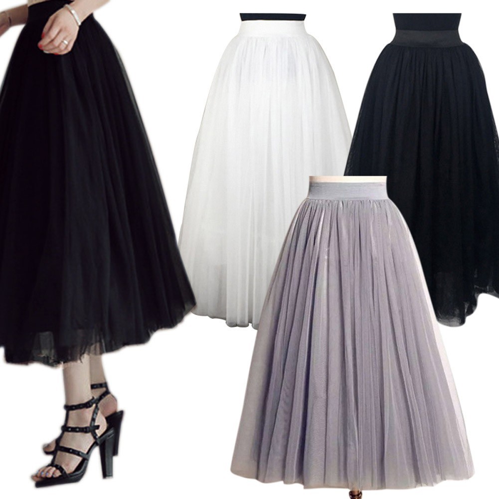 READY STOCK] Tutu Skirt High Waist Women 3 Layer Elastic Mesh Loose Long Skirt Kain Fesyen Wanita Longgar Trendy Design for Travel / Office / Event / Gifts / Birthday Present | Lazada