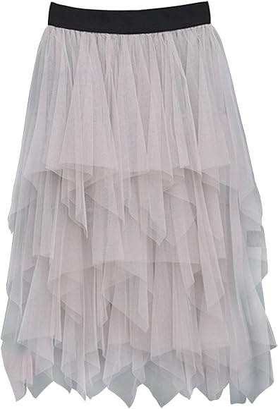 MisShow Women’s Sheer Mesh Tutu Skirt Layered Irregular Tulle Midi Skirt - Grey -: Amazon.co.uk: Clothing