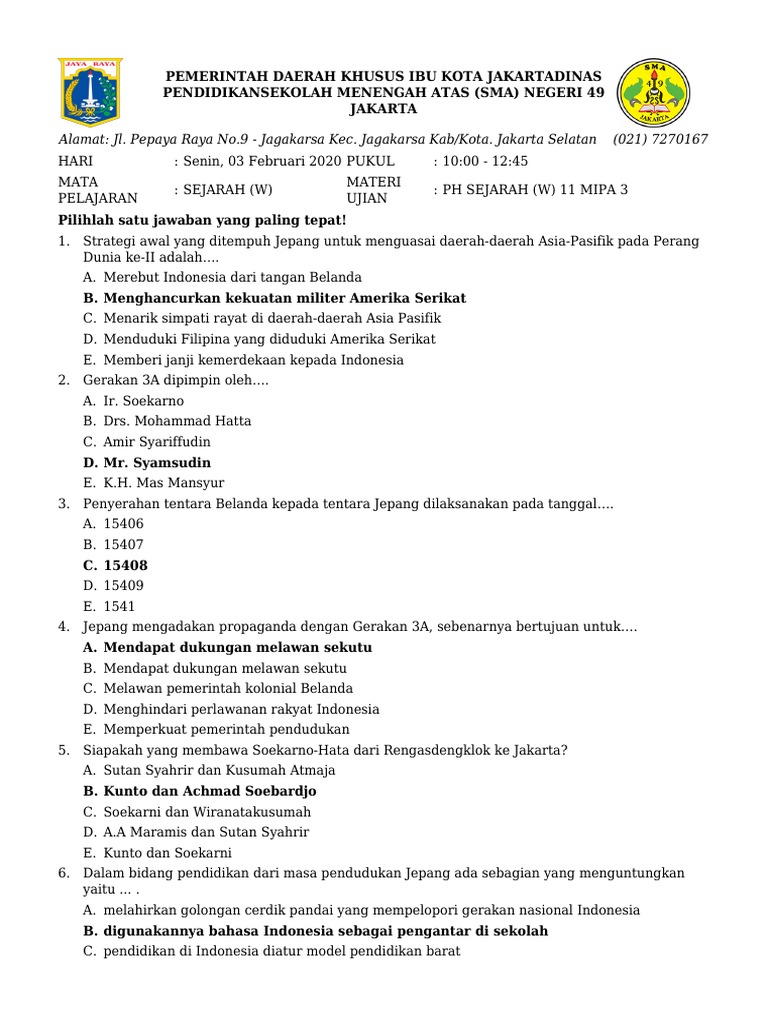 Contoh Soal Sejarah Kelas 11 Pendudukan Jepang di Indonesia …