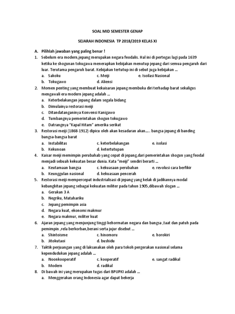 Ujian Mid Semester Sejarah Asia Tmur | talogondan