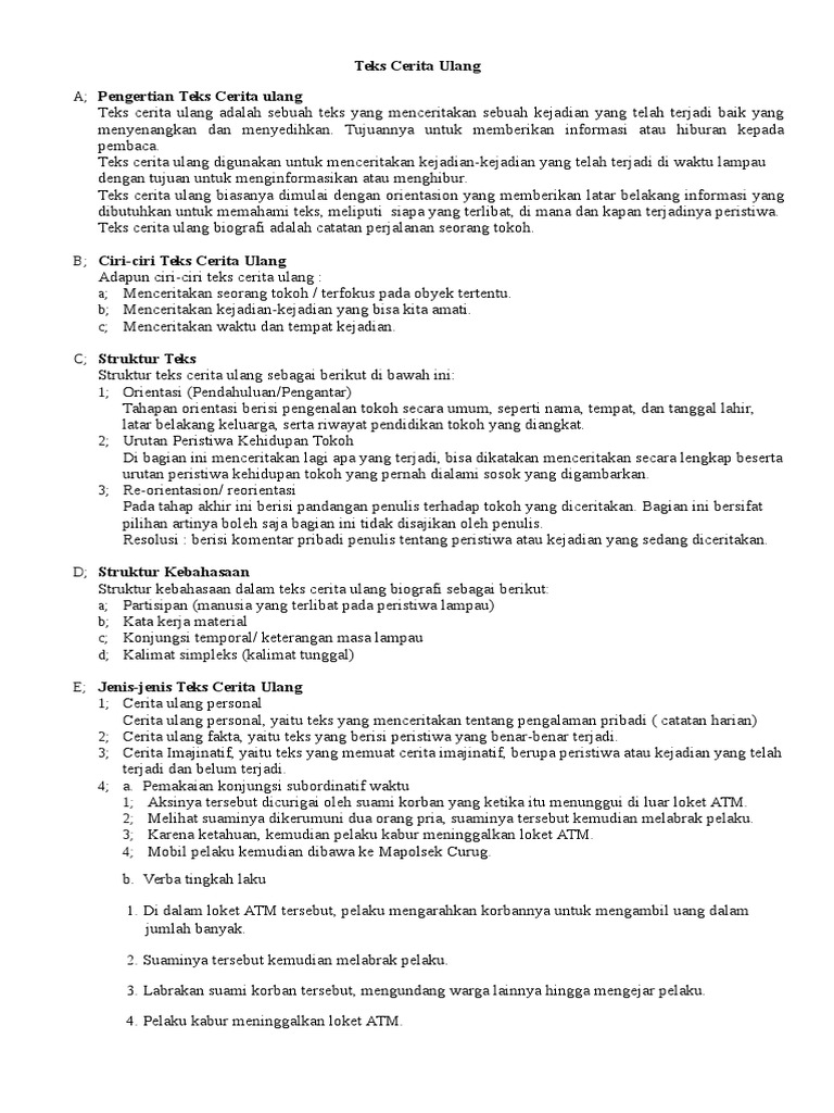 Struktur Dan Ciri Kebahasaan Teks Cerita Ulang