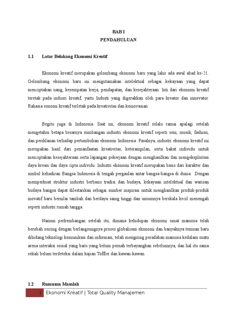 Contoh Makalah Ekonomi Kreatif Terbaru 2017 Docx