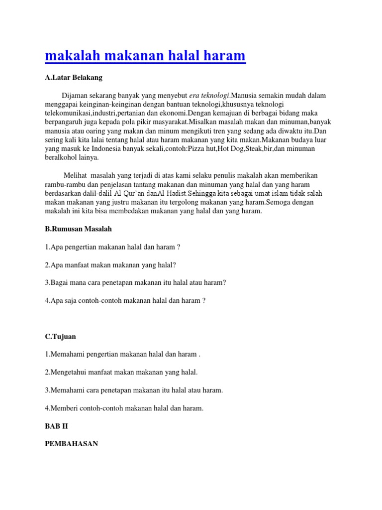 DOC) MAKALAH MAKANAN HARAM.docx | PUJI JOKO PURWANTO - Academia.edu