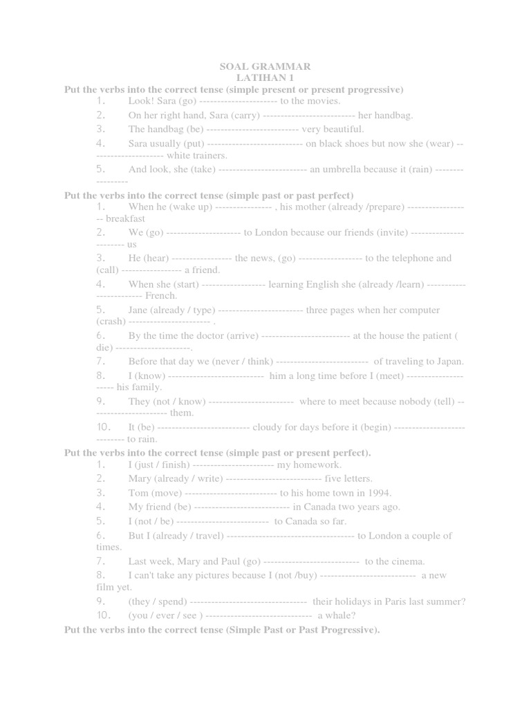 Contoh Latihan Soal Simple Present Tense, Simple Past Tense dan …