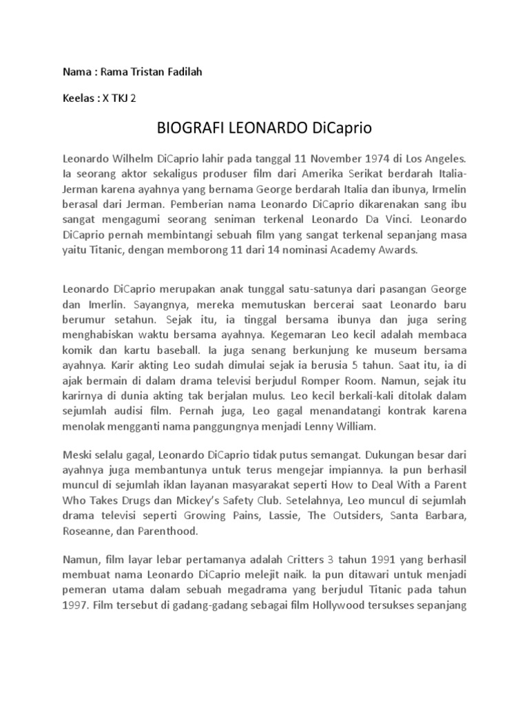 Biografi Leonardo DiCaprio - Aktor Amerika Serikat | Biografi Profil Biodata