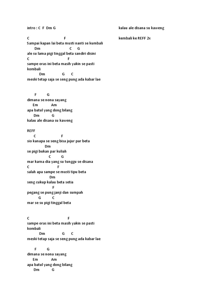 Lagu Karna Su Sayang Dan Kunci Gitarnya
