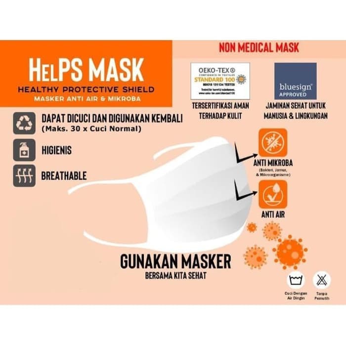 Jual Masker Kain Anti Bakteri Anti Air , Helps Mask by Bellini @pcs - Kota Surabaya - Lexan’OS | Tokopedia