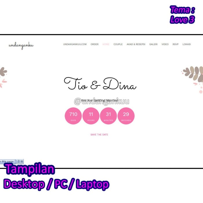 Jual (tema : Love 3) Jasa Membuat Undangan Nikah Online by Undangankuu.com - Jakarta Timur - Undangankuu Web Wedding | Tokopedia