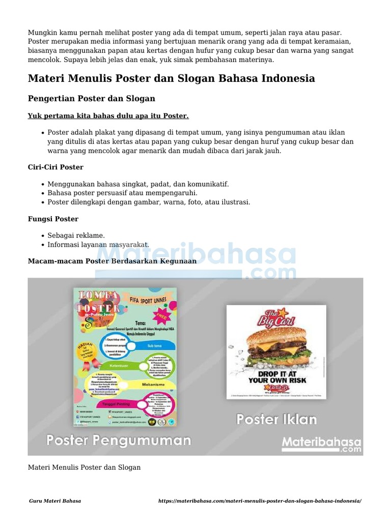Materi Menulis Poster dan Slogan Bahasa Indonesia - Materibahasa.com