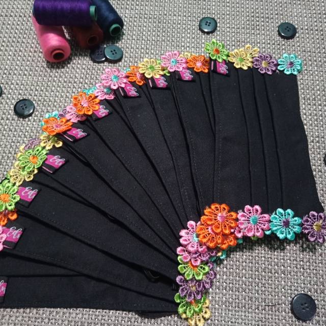 Masker kain model headloop / masker renda bunga / masker hias / masker unik / masker cantik | Shopee Indonesia