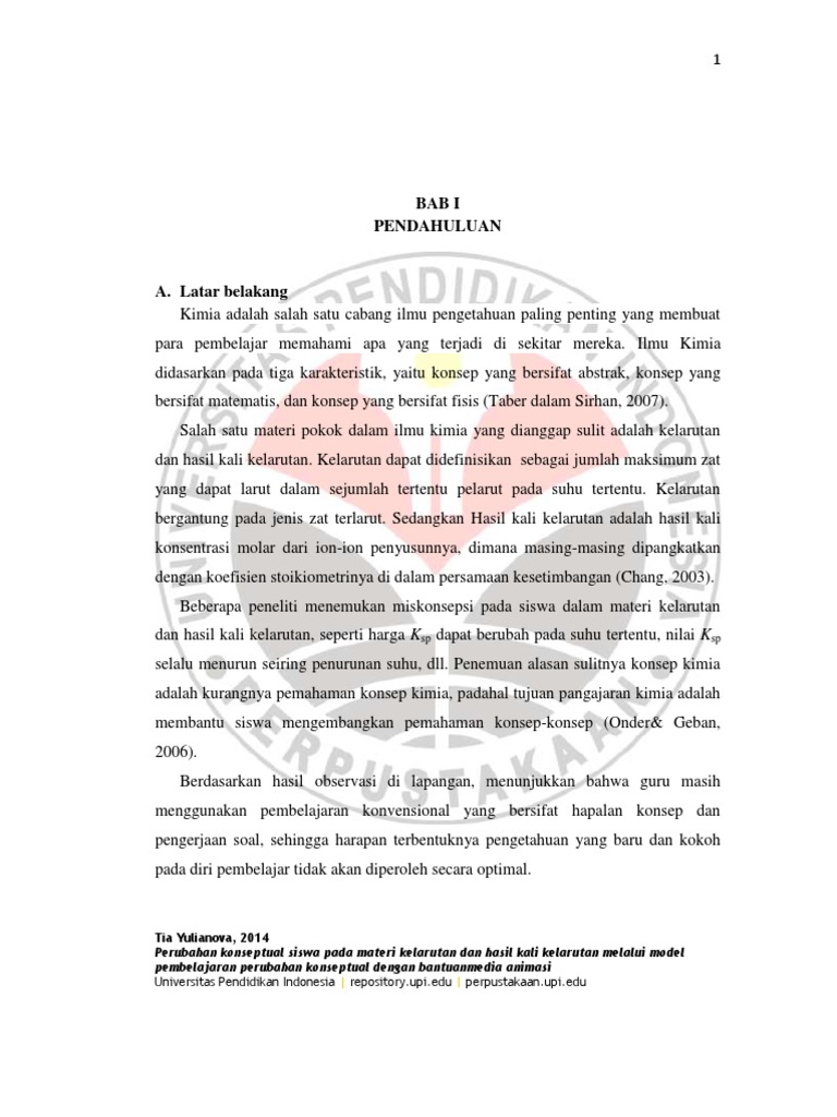 PERUBAHAN KONSEPTUAL SISWA PADA MATERI KELARUTAN DAN HASIL KALI KELARUTAN MELALUI MODEL PEMBELAJARAN PERUBAHAN KONSEPTUAL DENGAN BANTUAN MEDIA ANIMASI - UPI Repository