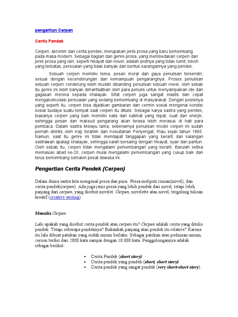 Cerpen Adalah - Pengertian, Jenis, Unsur, Tujuan Dan Contohnya